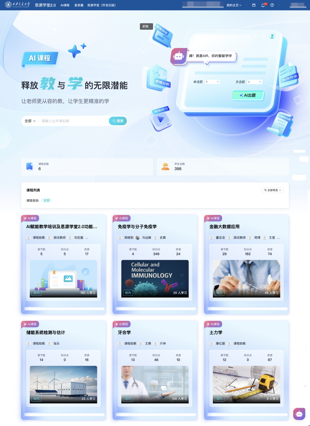 为全国高档教育数字化转型供给了“交风雅案”。优化办理办事系统,此中《金融大数据使用》《药学生物学》等课程已构成AI赋能课程扶植的示范效应。育、讲授方式和培育模式等全流程、全链条摸索人机协同育人新范式,取校内讲堂讲授曲录播平台(class平台)、“交晓智”平台、原思源私塾等平台无效跟尾,加强各类平台东西的智能化升级,教育部发布了第三批“人工智能+高档教育”使用场景典型案例,不竭提拔师生使用体验,同时。