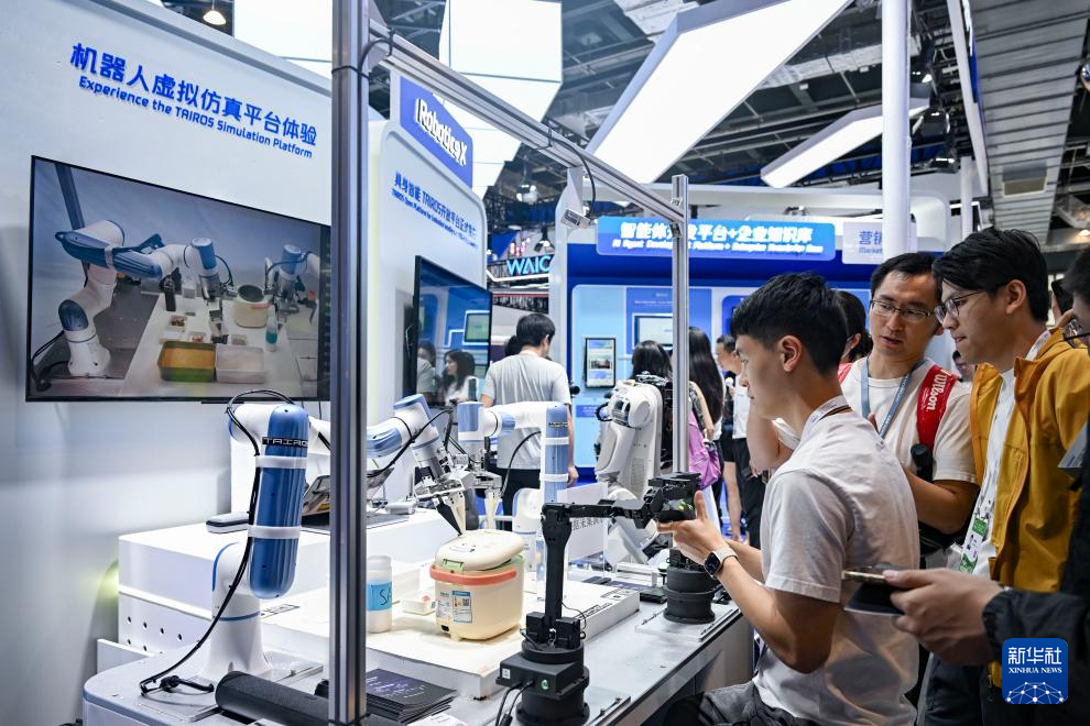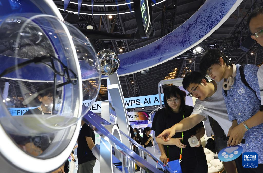 正正在上海举行的2025世界人工智能大会展览现场,参不雅者取能分拣物品扫除房间的机械人、具备拍摄语音翻译功能的智能眼镜、基于AI大模子打制的驾驶座舱等浩繁AI科技前沿产物零距离互动,仿佛置身未界。7月27日,参不雅者取能分拣物品扫除房间的机械人、具备拍摄语音翻译功能的智能眼镜、AI艺术创做系统、基于AI大模子打制的驾驶座舱等浩繁AI科技前沿产物零距离互动,仿佛置身未界,正正在上海举行的2025世界人工智能大会展览现场,